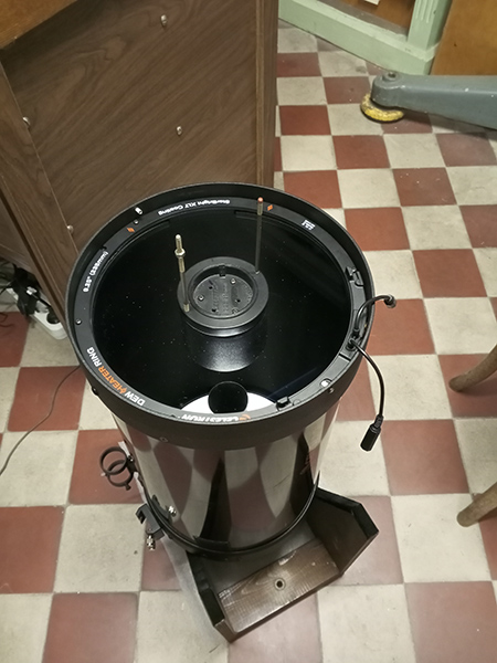Старенький селестроновский шмидт-кассегрен 9,25" поступил в разъюстированном состоянии с жалобой на вращение блока вторичного зеркала.