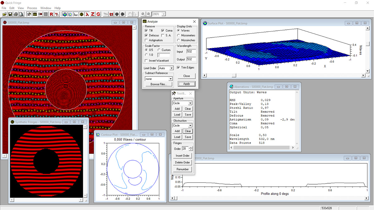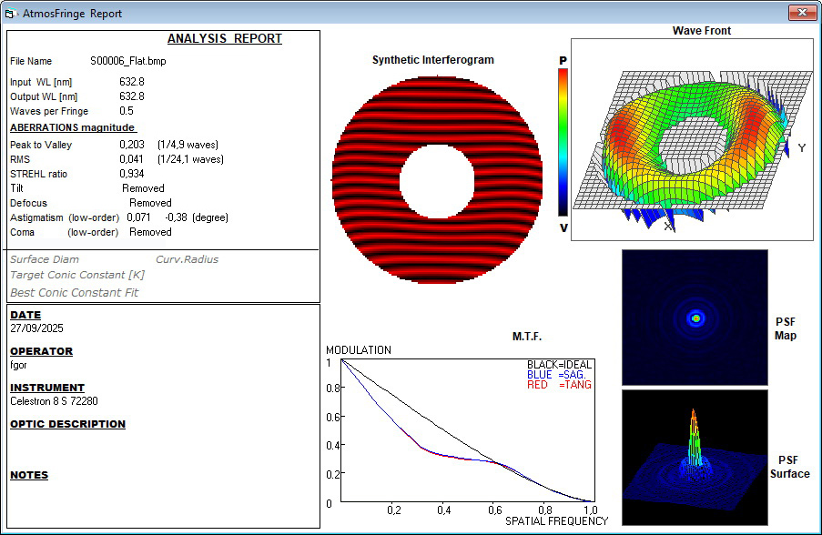 Отсняты интерферограммы в красном и зелёном. Произведён их обсчёт с вычитанием стендовой комы.